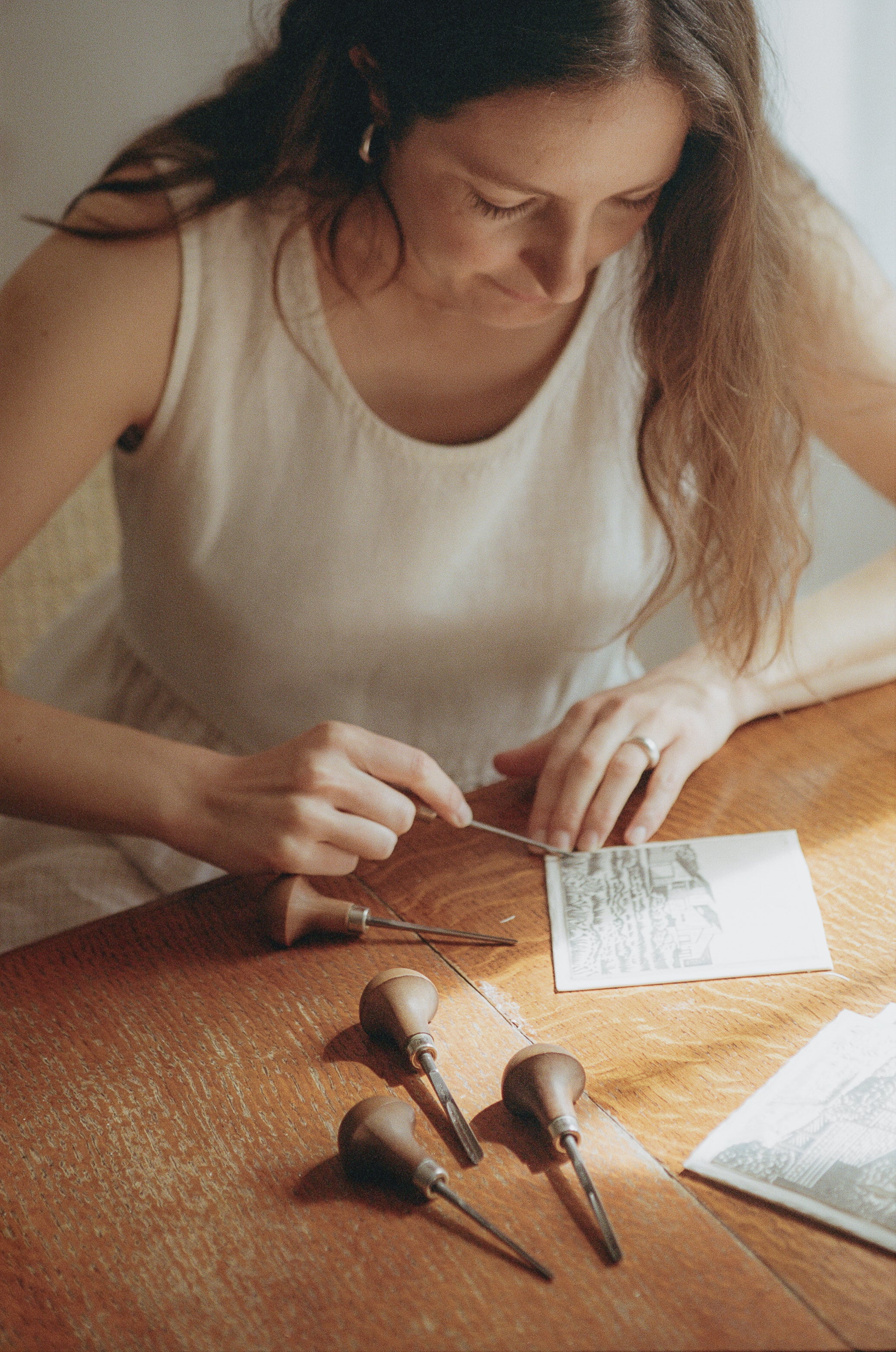 I’m a printmaker based in London, UK. I began printing while I was at university here in London, studying illustration, and it quickly became my go-to medium. I was so drawn to the character and texture of relief printing and the way of working really suited my personality.