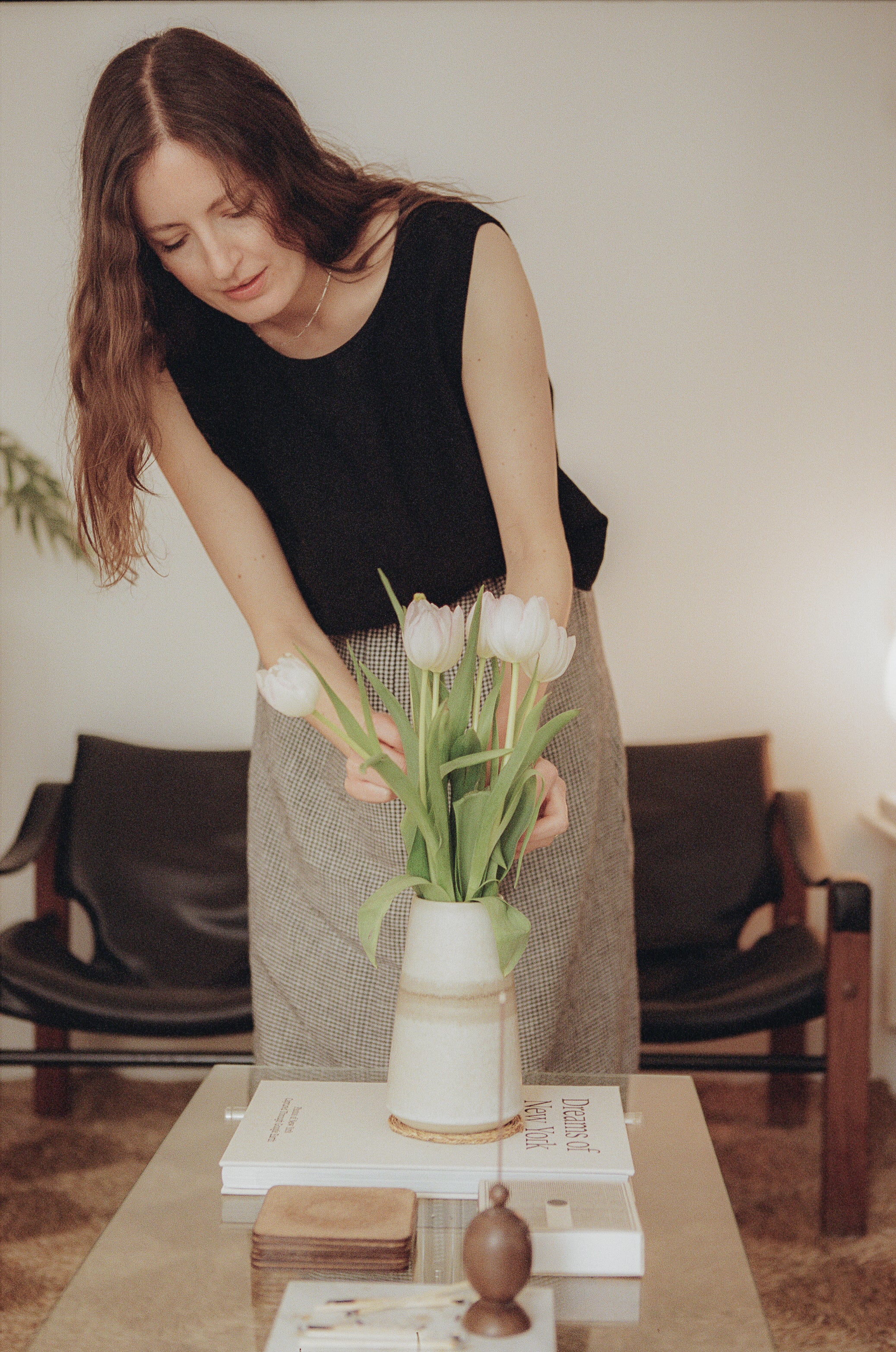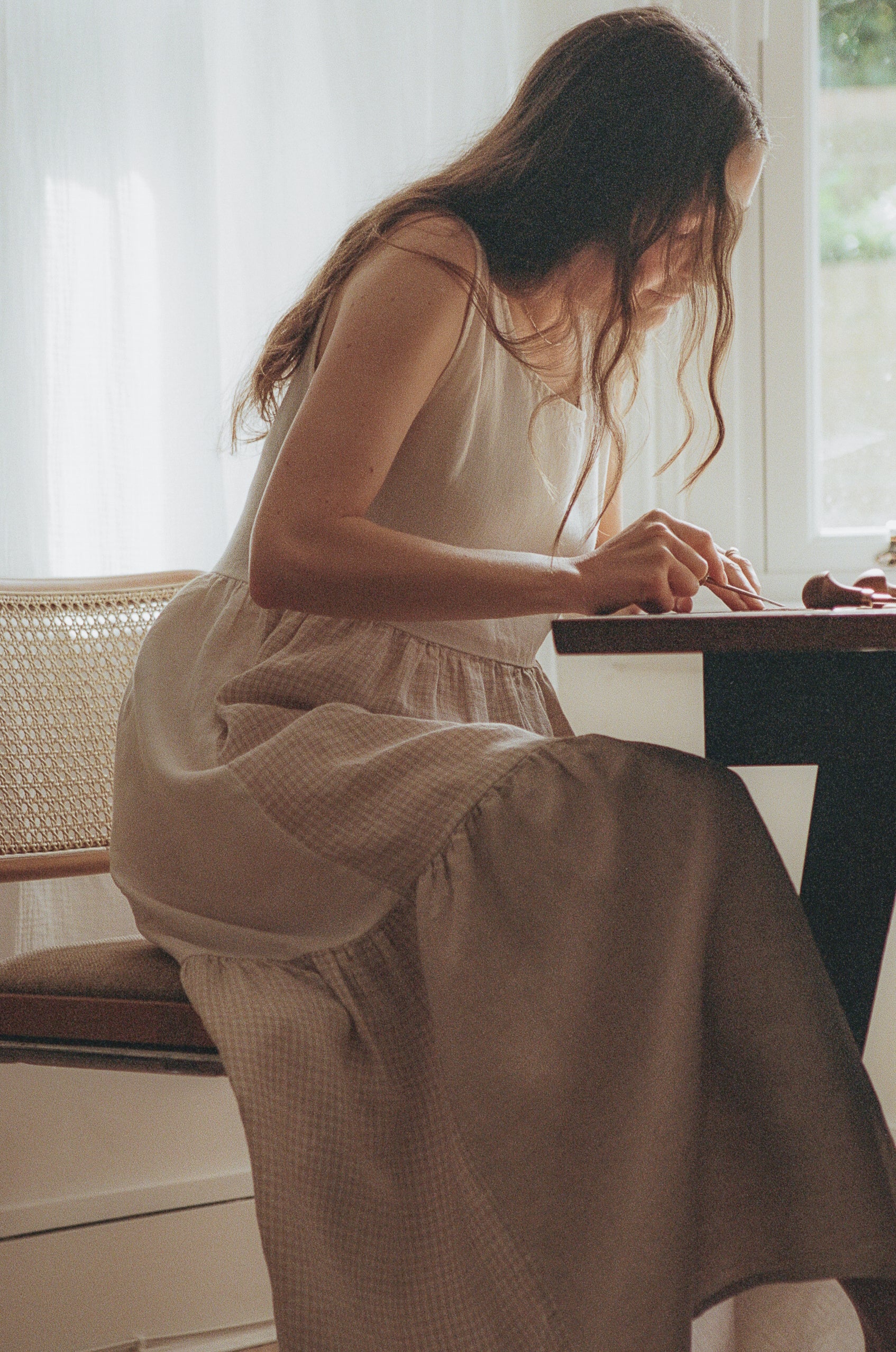 My daily uniform is generally some sort of linen shirt and high-waist trouser combination (basically anything that looks/feels like pyjamas!) but since being pregnant I’ve embraced dresses and overalls, often with a sweater thrown over the top because spring can be pretty chilly here.